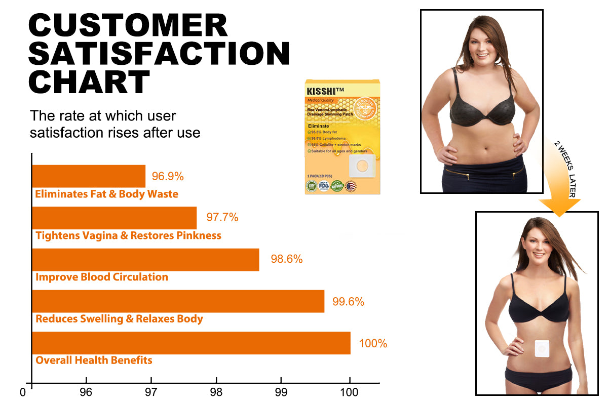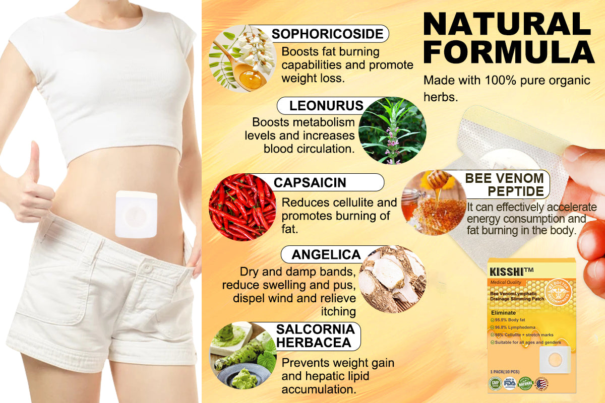 Medical tests have confirmed that KISSHI™ contributes to rapid and effective weight loss. The method works day and night, actively stimulating the body to burn fat. One could say that the substances contained in the patches, after being released onto the skin, transform the body into a real fat burning machine.